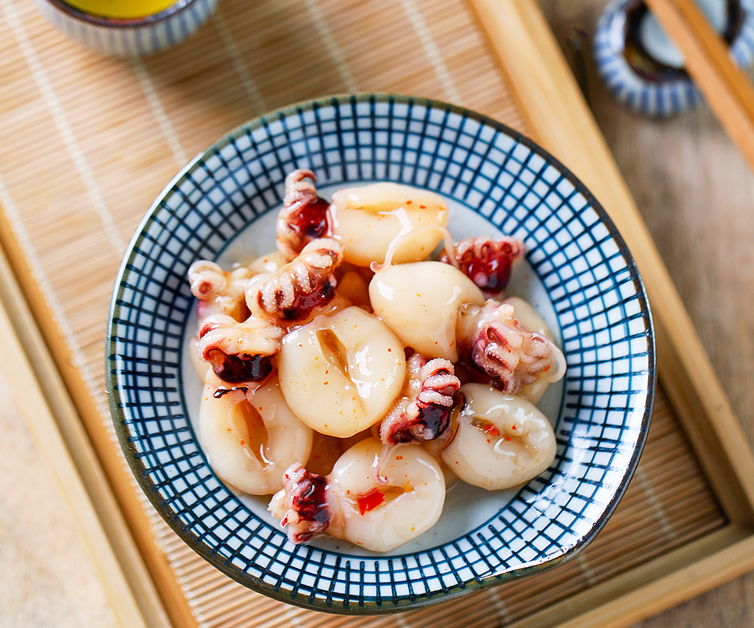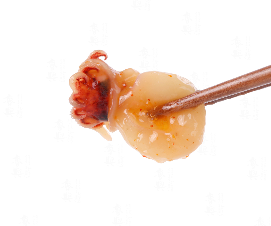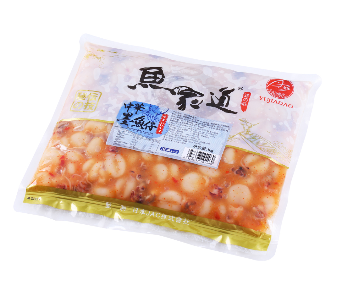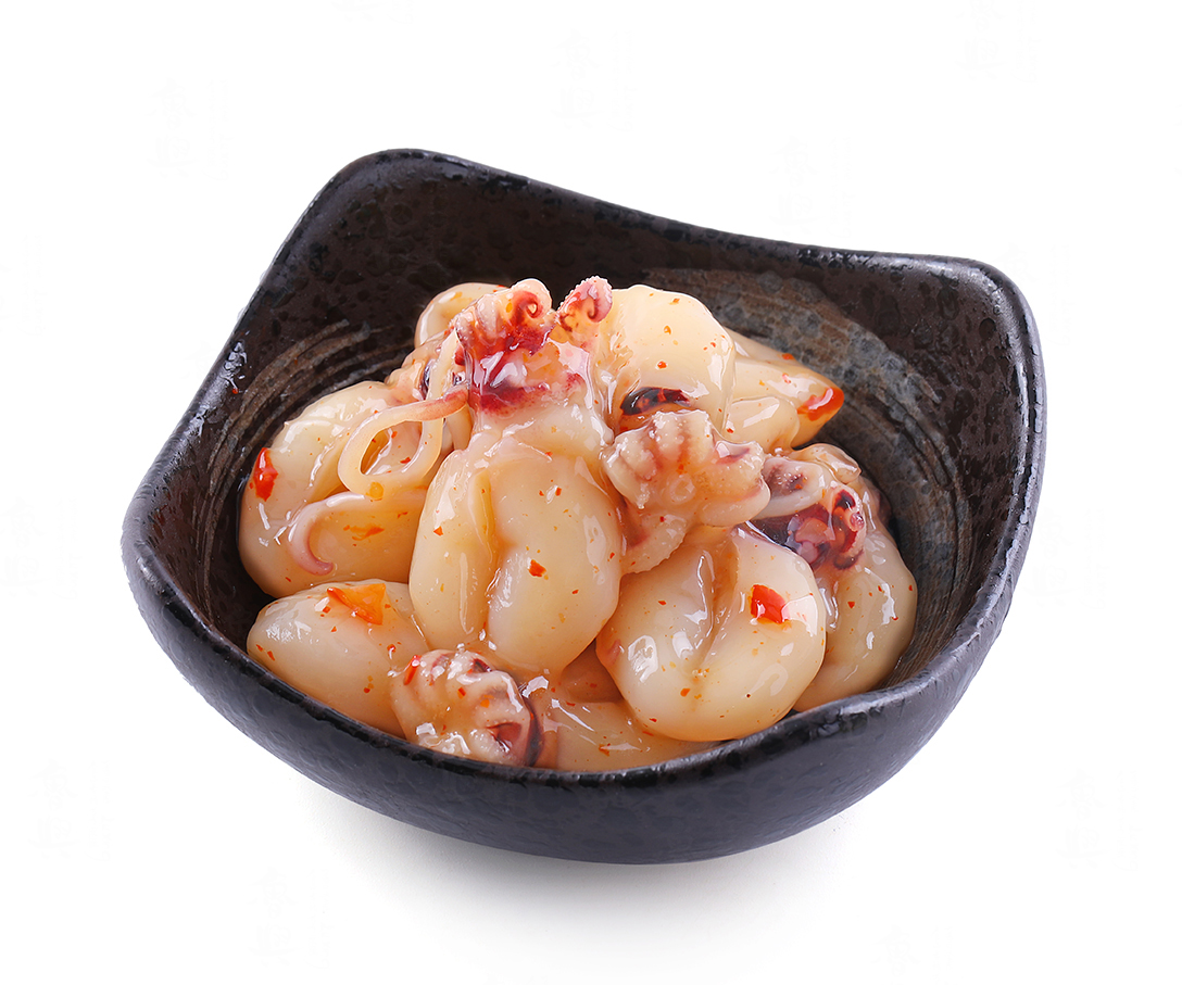 中華墨魚仔,是日本料理前菜中最受欢迎的产品。本品选用鲜度极高的小章鱼,配以秘制的日式调味酱,经独具匠心的调理精制而成。色泽油亮赏心悦目,口感劲道,风味鲜美独特。既可做日本料理前菜,也可以用做寿司的辅料。